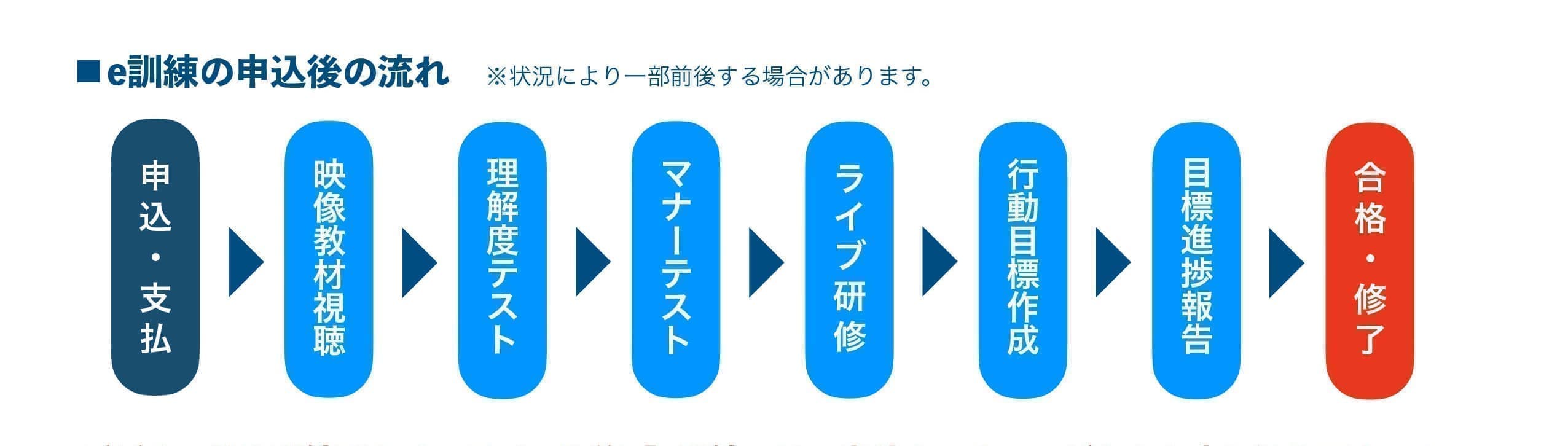 | 2.オンライン研修で応用力を身につける | 「知っている」を「出来る」に変えるためのオンライン研修。テキストを使いながら、実践を伴う内容もオンラインで直接指導し、理解を深めていきます。 |